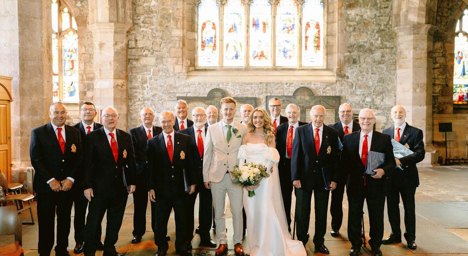 Thankyou again so much for singing at our wedding on 8th June 2024.We have reflecting on our special day and we are so happy that your choir sang for us- it really made the service feel so special and we thank you all so much.My Grandma has said how much Grandad would have loved the service and how much he loved being part of the choir.All your voices sounded amazing and we cannot thank you all enough.Please see below a photograph sent over from the photographer, from the previews.Best wishes always,